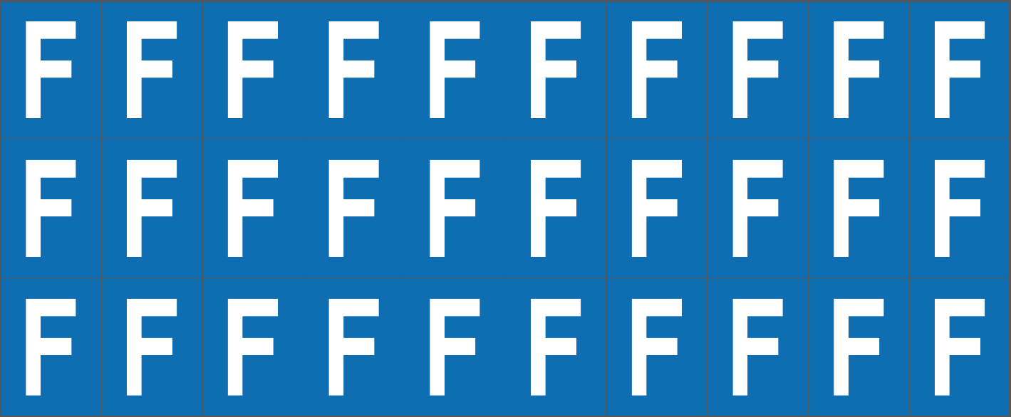CONF.5 PZ FOGLIO.ADES.PVC.250X100 MM N.30 ETIC.25X33 MM B/B LETTERA F