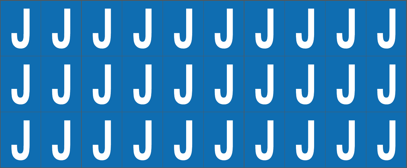 CONF.5 PZ FOGLIO.ADES.PVC.250X100 MM N.30 ETIC.25X33 MM B/B LETTERA J
