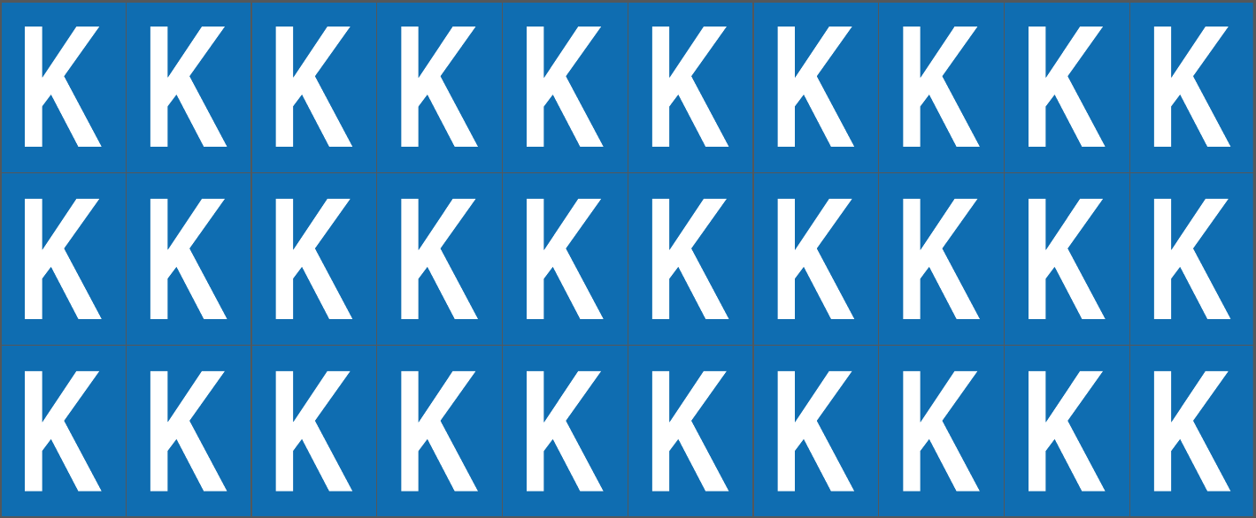 CONF.5 PZ FOGLIO.ADES.PVC.250X100 MM N.30 ETIC.25X33 MM B/B LETTERA K
