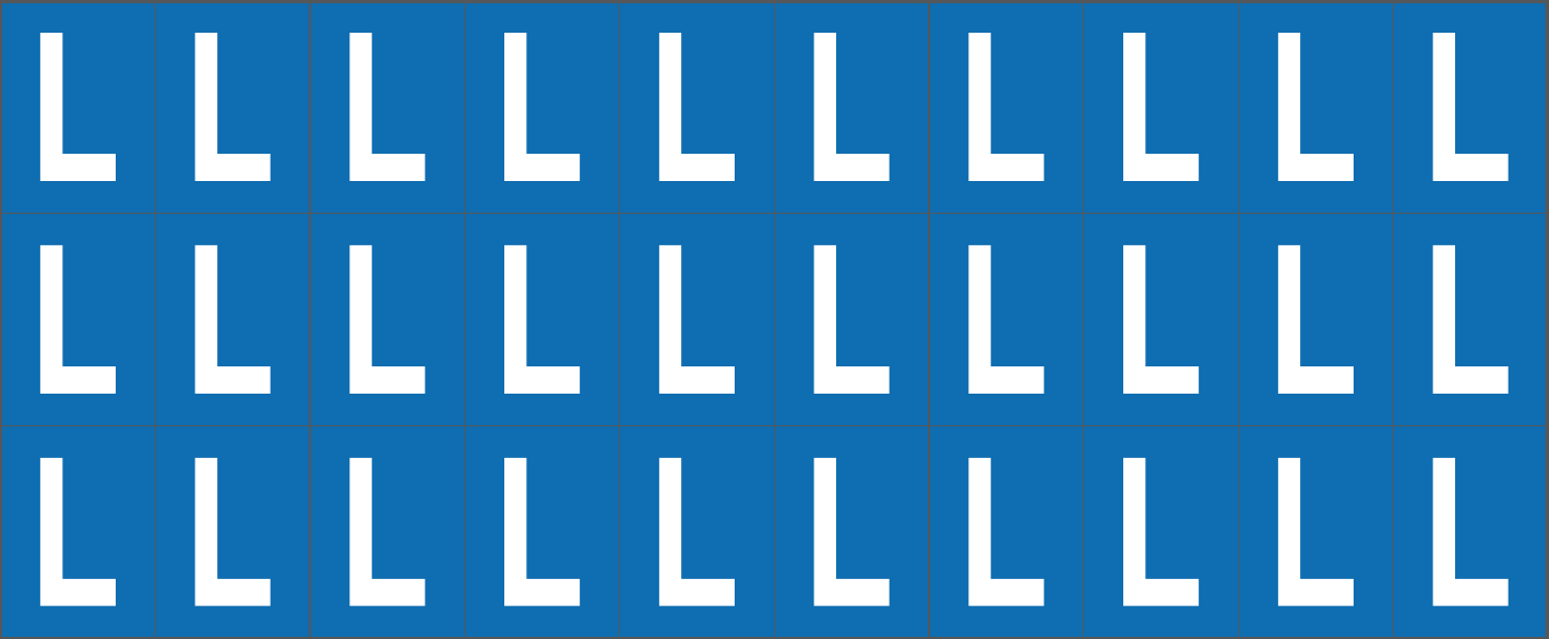 CONF.5 PZ FOGLIO.ADES.PVC.250X100 MM N.30 ETIC.25X33 MM B/B LETTERA L