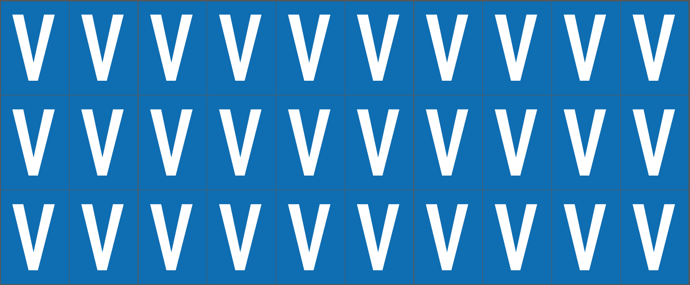 CONF.5 PZ FOGLIO.ADES.PVC.250X100 MM N.30 ETIC.25X33 MM B/B LETTERA V