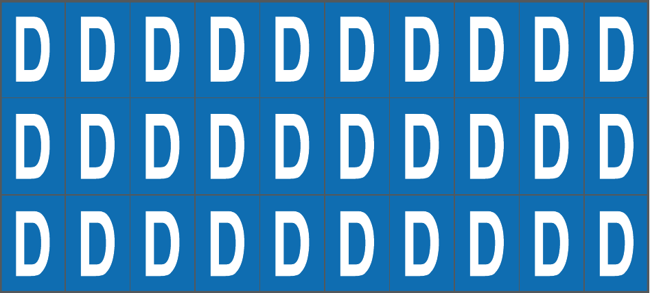 CONF.5 PZ FOGLIO.ADES.PVC.160X72 MM N.30 ETIC.16X24 MM B/B LETTERA D