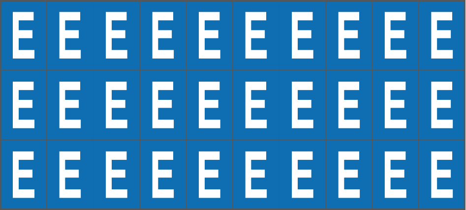 CONF.5 PZ FOGLIO.ADES.PVC.160X72 MM N.30 ETIC.16X24 MM B/B LETTERA E