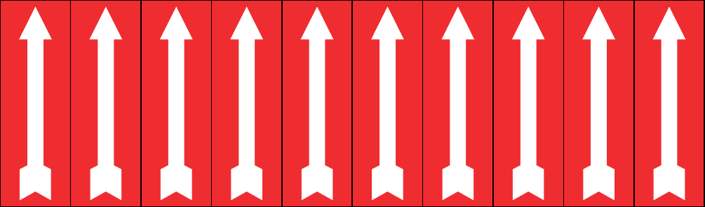 CONF.5 PZ FOGLIO ADES.PVC 170X50 MM N.10 ETICH.17X50 MM FONDO ROSSO FRECCIA BIANCA