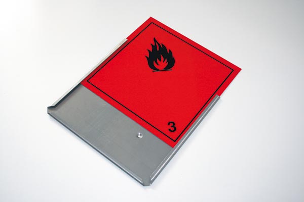 Portacartelli per trasporto merci pericolose in acciaio inox AISI 304, spess. 1 mm, con gancio.