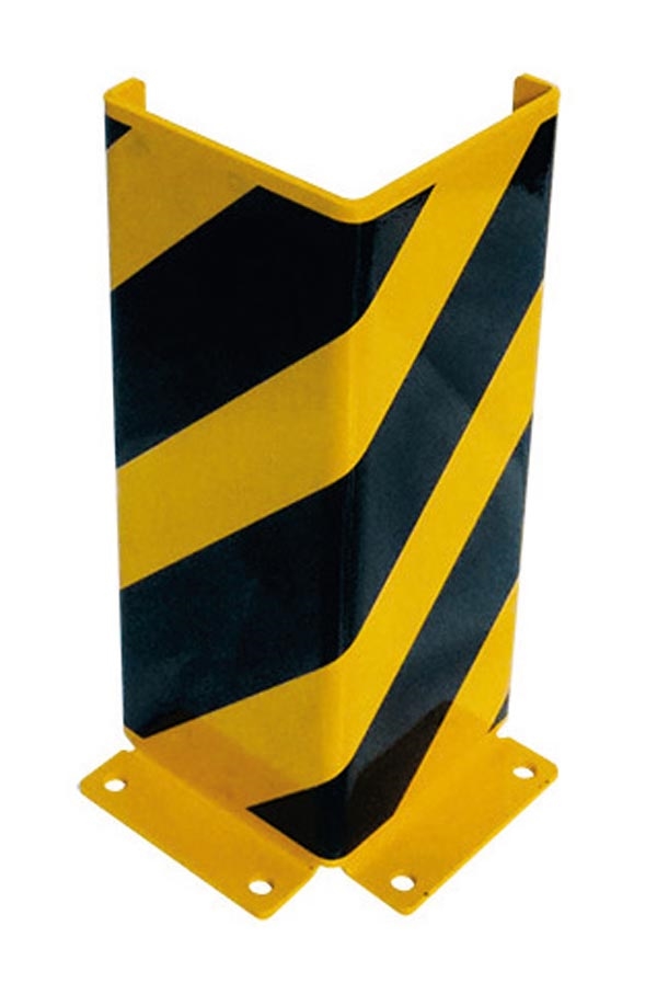 Angolare di sicurezza in acciaio a protezione di scaffali e rastrelliere. Interamente in acciaio, spessore 6 mm. si adatta perfettamente in ambienti esterni ed interni. Verniciatura a polvere di colore giallo che permette un'ottima visibilità, con strisce nere di avvertimento. Piastra per il fissaggio imbullonabile al terreno (135x40x6 mm.). Ingombro massimo 160x160 mm. Tasselli per il fissaggio inclusi.