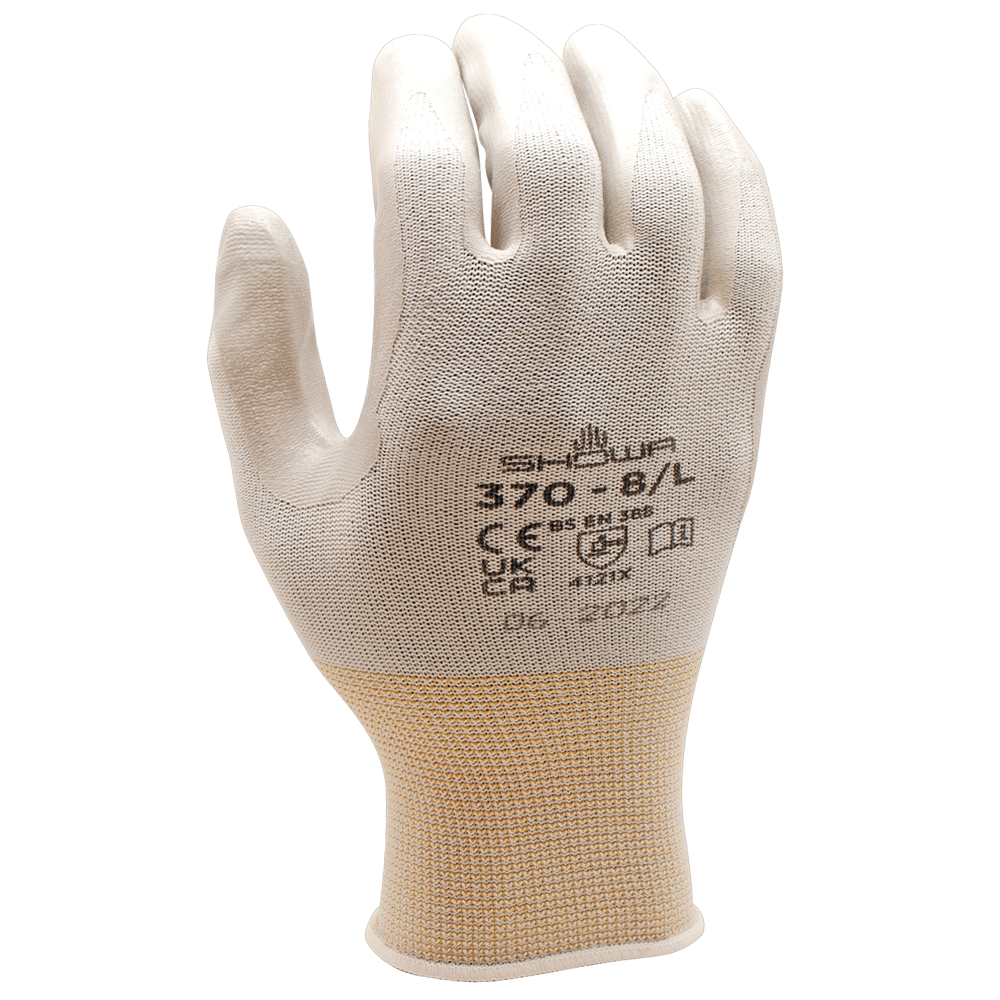 Il 370W è leggero e flessibile per aumentare il comfort e ridurre l’affaticamento della mano. Il colore chiaro è perfetto per l’uso in ambienti puliti, mentre il durevole rivestimento in nitrile offre presa asciutta e precisione tattile eccellenti. Il design in tessuto aperto sul dorso consente la fuoriuscita di aria e umidità e previene la traspirazione all’interno del guanto.
