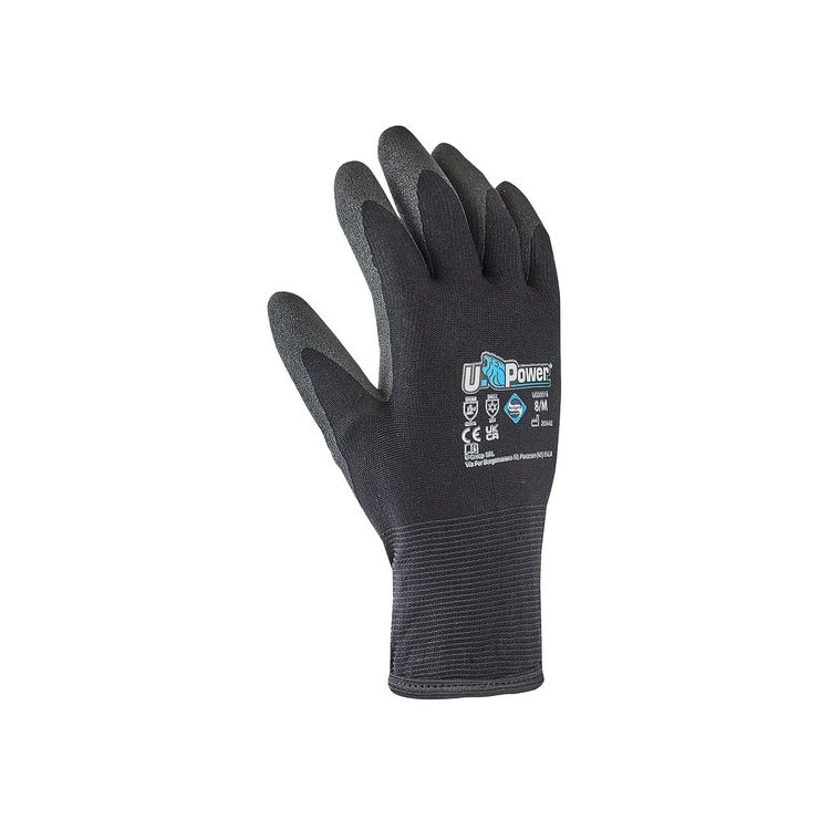 Guanto da lavoro U-Power con protezione contro i rischi meccanici e termici, perfetto per lavori che richiedono alta precisione grazie alla finitura a 15 aghi. La tecnologia idrorepellente HPT conferisce al rivestimento una formulazione unica che rimane morbida e flessibile anche a temperature fino a -50°C.